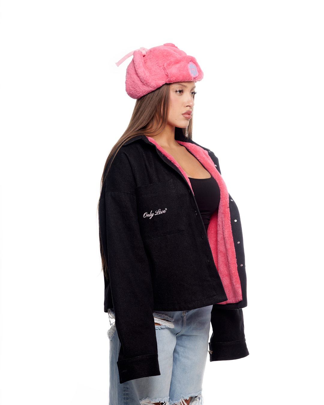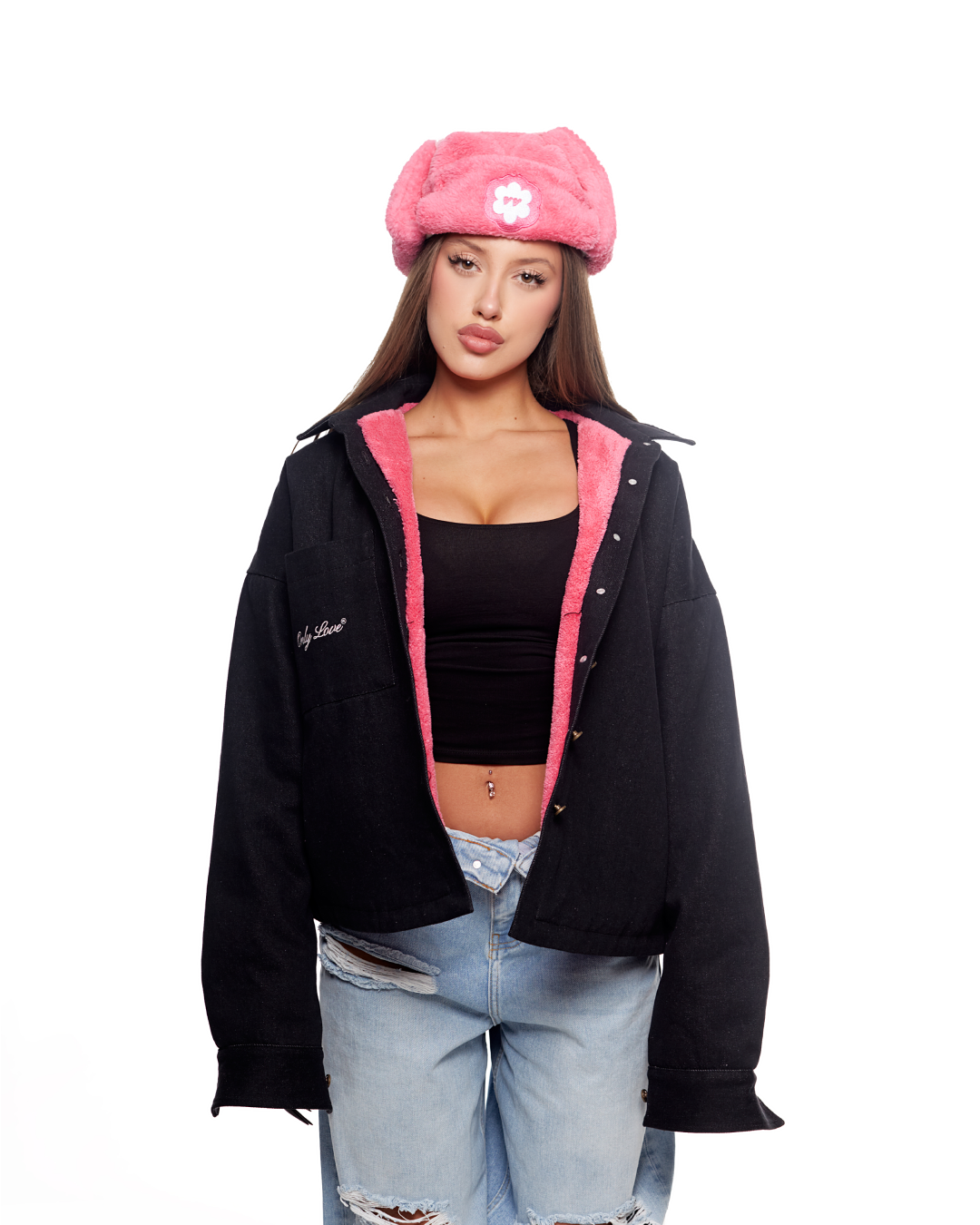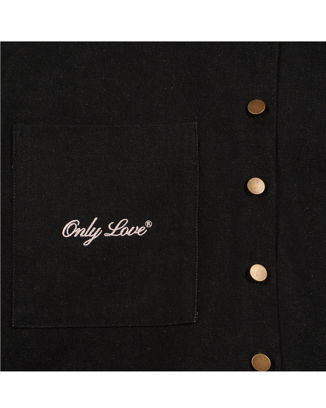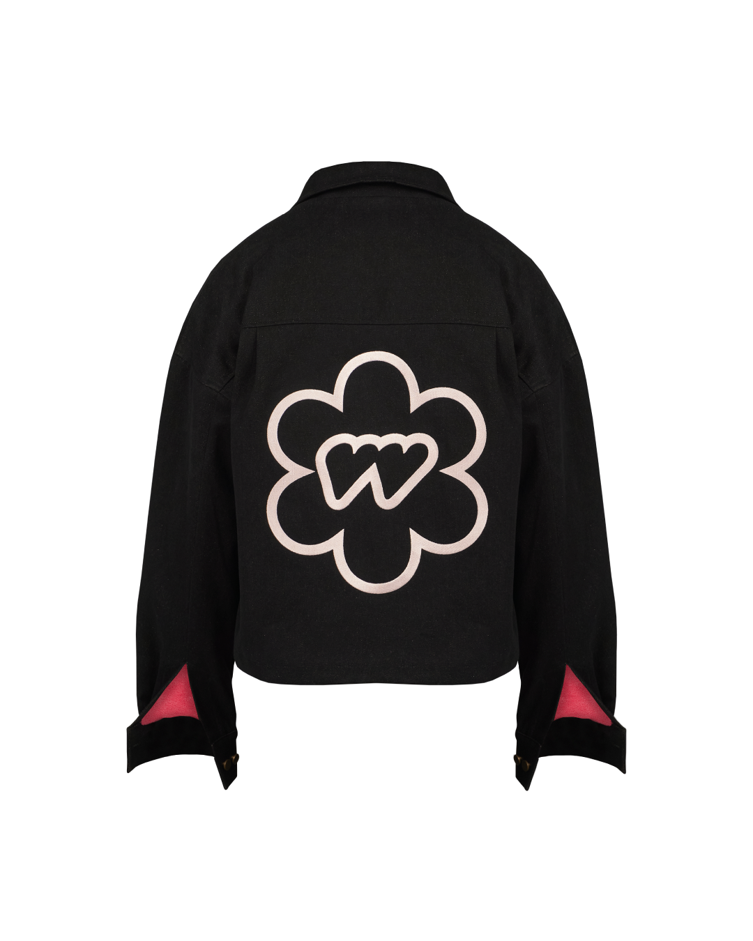 Джинсовая черная куртка с подкладкой и вышивкой на кармане и спине